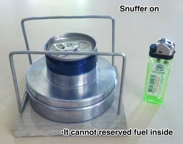 Estufa de Alcohol favorita de Johan: puede un quemador (No soporte del pote)Esta estufa utiliza solamente uno puede y no necesita soporte de ningún bote.El diseño transfiere mucho calor a la olla y no alrededor de él.En el taller las latas, tienes un
