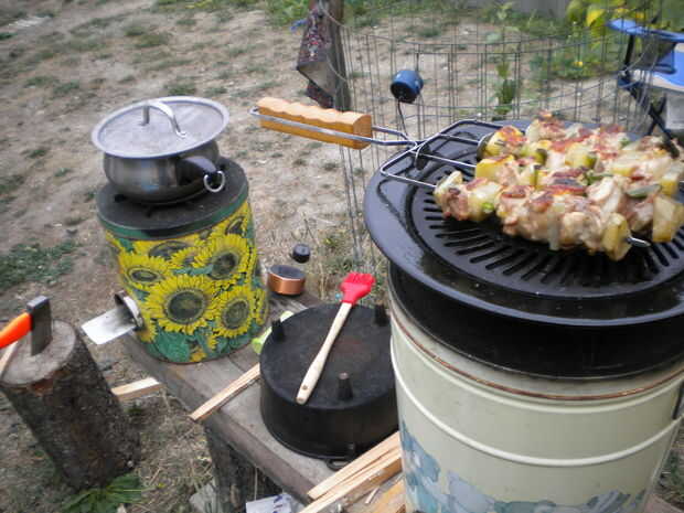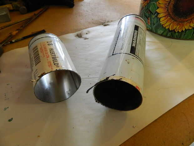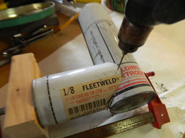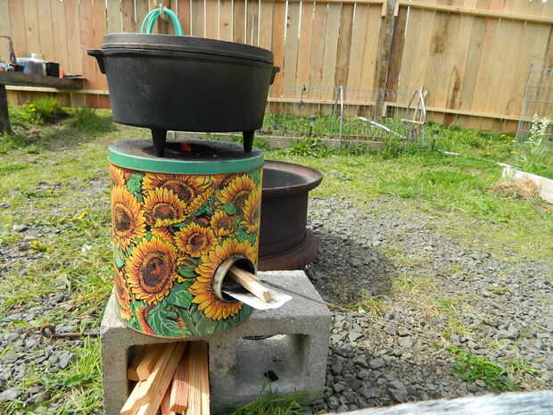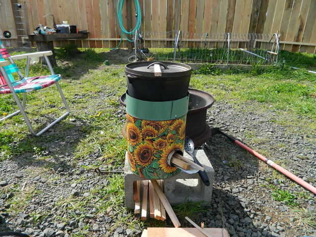 These are some rocket stoves I built last year. Un gran trabajo y muy poca madera, principalmente de palos y ramas. Los tamaños de todos dependen el tamaño de la tubería y las latas se puede encontrar. Usted puede construir uno con unas tijeras, un destornillador y una pluma de marca una lezna o punzón