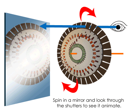 Si usted hizo un phenakistoscope más pequeño y ligero, una chincheta en un borrador de lápiz es mejor que jamming un lápiz por el agujero central.