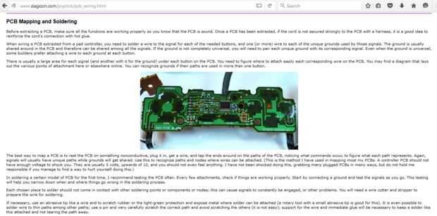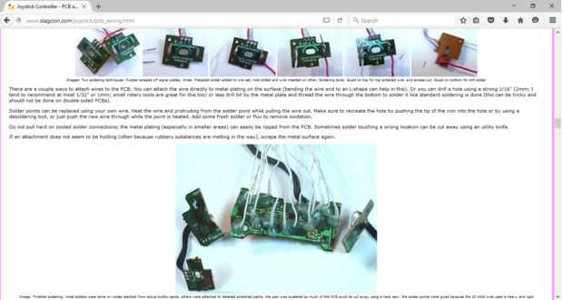 Ahora permite llega a soldar. Cada controlador es diferente por lo que sería mejor buscar información o encontrarla con un multímetro. He usado el sitio slagcoin.com. Tiene un montón de información. Hay cuadros con una captura de pantalla del sitio. Mina tenía las almohadillas de contacto negro para cada botón. I enganchado hasta la pc y entró en la interfaz de usuario de configuración de joystick (para windows ir a dispositivos o el panel de control luego joystick) y aprovechado alrededor de los botones con algunos cables para buscar los contactos. Luego raspar parte del material negro y soldar algunos cables. Bueno para reforzar la conexión con pegamento caliente.