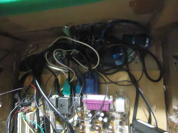 Ahora la madre del tablero interior y conecte el mouse, cable de vga de pantalla lcd, lcd cable y altavoces audio enchufe. A continuación, conecte el controlador de ps2 al adaptador usb y hub usb. Pegue el hub usb y el botón led en la ranura. Ahora agregue el papel laminado al lado y cabe la esperanza. Si no imprimir más diseños y decorar los errores!