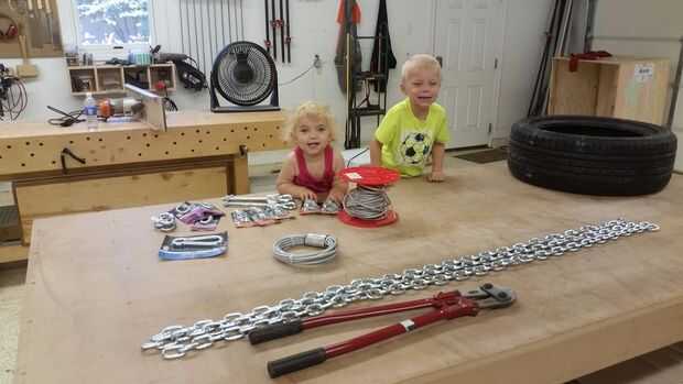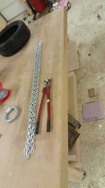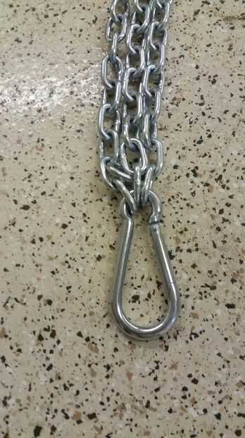 15' - 20' de 1/4" o una cadena más gruesa (no uses algo wimpy) - usted tendrá que cortar en 5 a 7 pies de largo, así que si no tienes una manera de cortar, que hacerlo en la tienda.