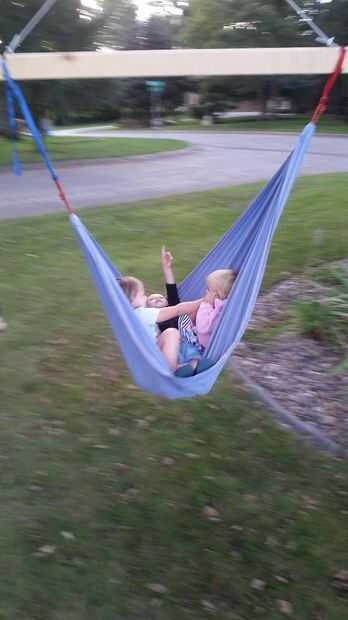 Funciona muy bien para niños pequeños, la causa puede realmente sientan muy bien en la parte baja de la hamaca sin tanto riesgo de caerse como con el columpio de neumático, también es mucho más cómodo para adultos sentarse con los niños.