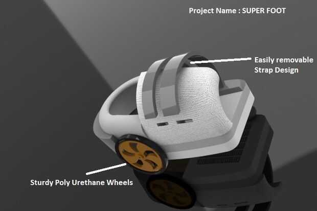 El pie SUPER consistirá en un par de menos botas de vestir de peso, ruedas motorizadas, una batería, una correa trasera de apoyo y una unidad motorizada compacta. El movimiento y la dirección de las ruedas pueden ser controlados por el mecanismo utilizado dentro de las botas.