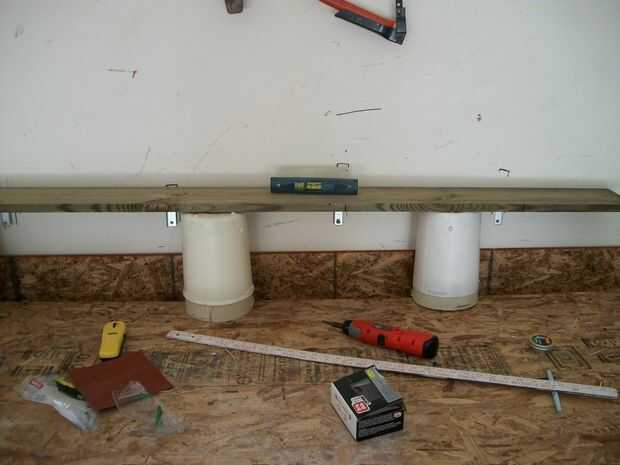 Configurar tus cubos de plástico entre el montante marcas y os estante en los cubos. Asegúrese de que sus soportes están alineados con los postes de madera. Asegúrese de que este es nivel.