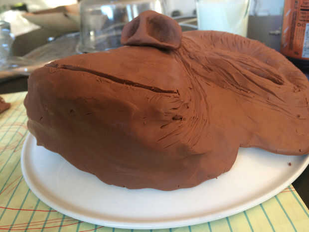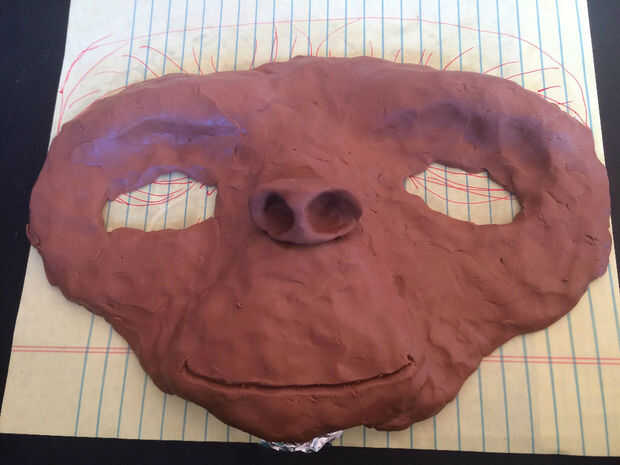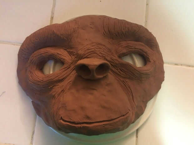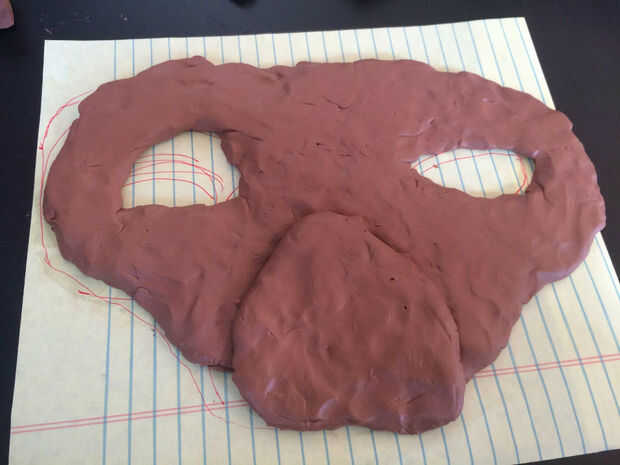 4 cuando tuve la forma plana hace básicamente, puse la cara sobre un recipiente (horno) para la construcción de la barbilla, lado de la cara y la parte superior de la frente hacia abajo.