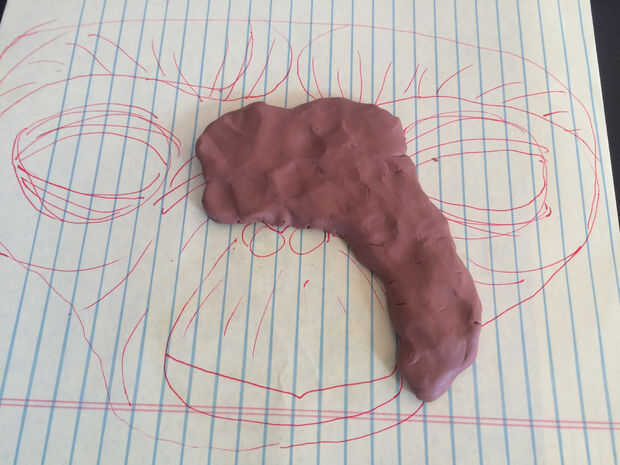 1. Empecé dibujando un bosquejo áspero de lo que he querido cara de E.T. para parecerse en algún papel. Esto me ayudó a como comencé a capa de la arcilla Sculpey Living Doll.