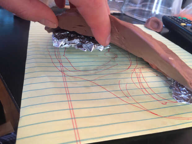 2. el Sculpey puede tomar un par de minutos para calentar en la mano pero luego es bastante flexible. Es bastante fácil empezar a moldearlo y suavizado a las otras piezas.