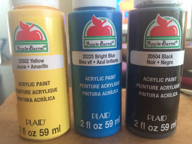 4. sólo usé acrílico barato. Pintar un ligero anillo amarillo alrededor de la pupila. Pintar el iris azul. Encontré que hizo para una mirada más realista con unos tonos de azul. Finalmente los alumnos de pintura negra.