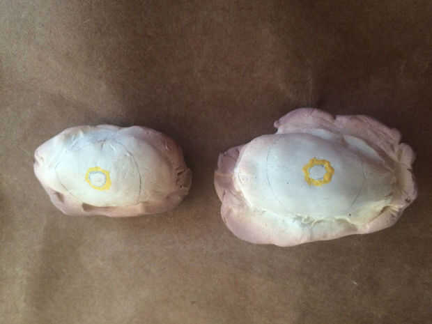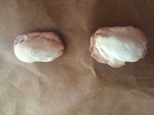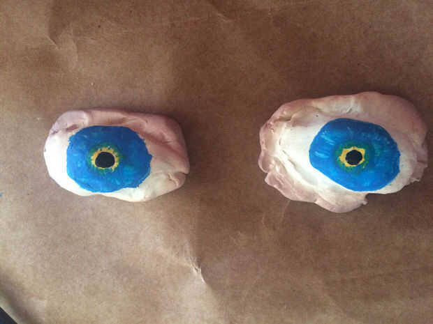 2. una vez que tenga una forma que te gusta, les cuece al horno y deje enfriar. Tenga cuidado de no hornear demasiado. Quemé los ojos un poco!