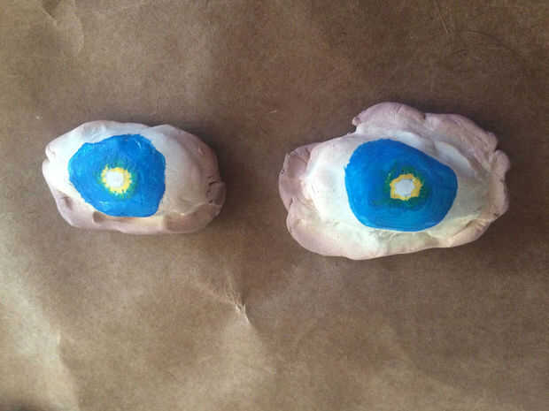 3. una vez que estén frías, dibuja el iris y las pupilas con lápiz.