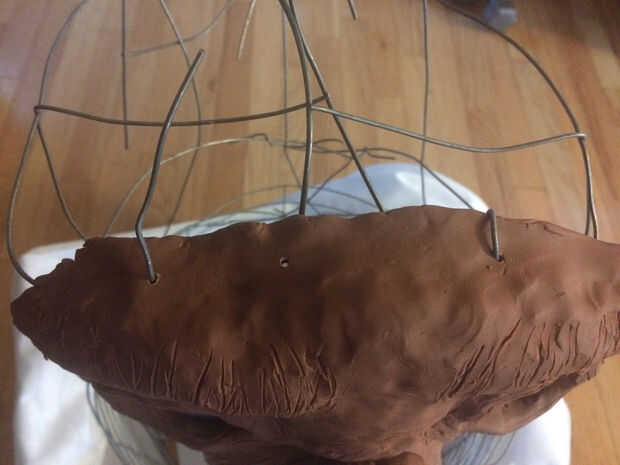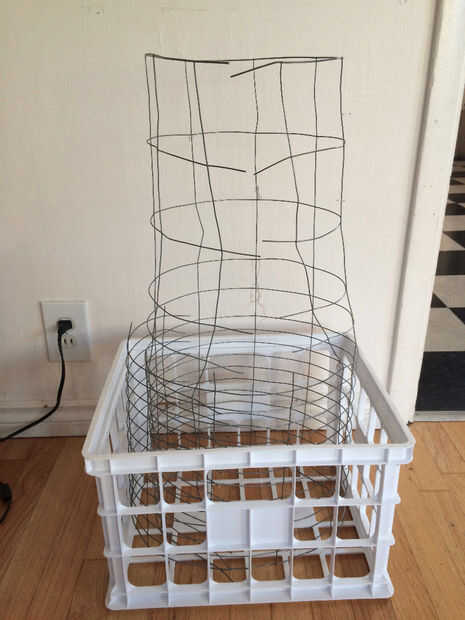 1. crear el cuerpo de E.T. con alambre de pollo. Te recomiendo alambre con más espacios entre los alambres en lugar del alambre de pollo que es más como malla. Utilice cortadores de alambre para el cable en la forma del cuerpo de la E.T. de la forma. Afortunadamente, el cuerpo de E.T. es bastante simple. Sólo hacer un poco más estrecho en el cuello.