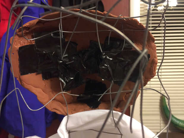 4. una vez que tengo la cabeza había situado en cómo quería, usé algunos cinta para garantizar la cara en el alambre.