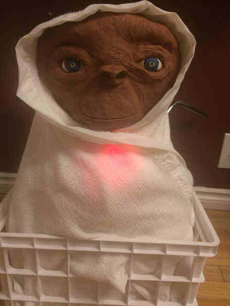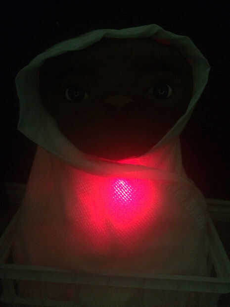 3. Añadir corazón de E.T.! Tenía grandes planes para crear mi propio LED latiendo corazón pero corrí fuera del tiempo! ¡ Acababa de usar una luz de bicicleta y funcionó muy bien! Acaba de encontrar que pulsos en un corazón como el ritmo o simplemente dejar encendida una luz constante. No es necesario tener el corazón pero es un buen toque!