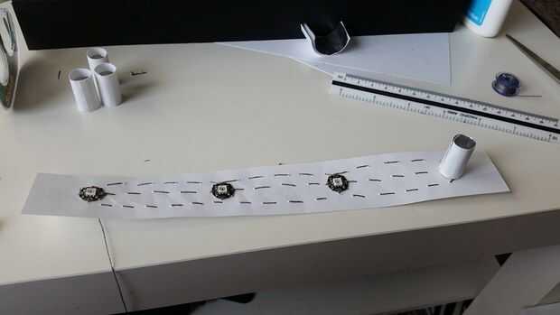 Paso 6: Coser el circuito y Neopixels y colocación de luminarias