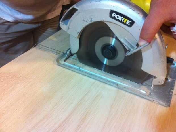 Corte con sierra circular para alcanzar el orificio previamente perforado y terminado con la sierra caladora.