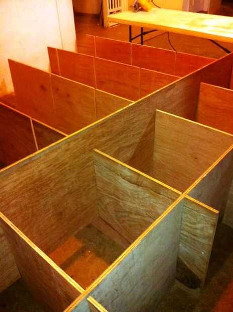 Montar las piezas como se muestra en la imagen y colocar las dos hojas de la tapa de madera contrachapada de 18 m m, pintura y disfrutar.