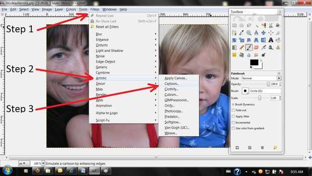 - En los filtros, en el desplegable click artístico haga clic en dibujos animados.