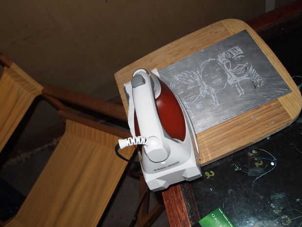 - Otra imagen del hierro. Decidí primero del hierro en la fotografía, luego regresar y aplicar mis letras. En las fotos te darás cuenta la imagen y las palabras son de un color diferente, esto es debido a utiliza un tipo diferente de papel que no deja ninguna pelusa. En teoría podría planchar en secciones pequeñas, aunque creo que esto puede resultar problemático.