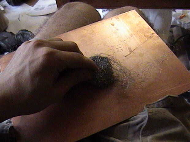 En primer lugar, que desea tomar un trozo de lana de acero para la hoja de cobre (ambos lados) y buff hasta que toda la hoja es brillante.