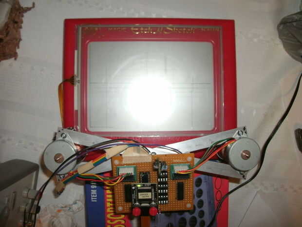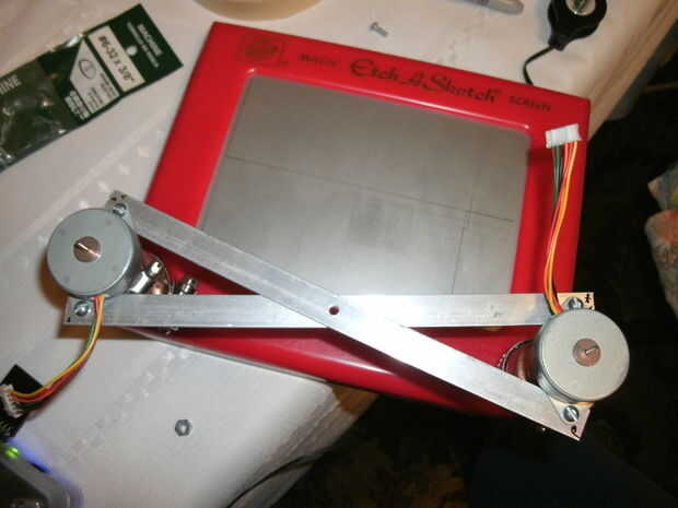 Sí, podría haber sólo pegué todo junto o algo, pero una meta importante de esta versión del diseño fue permanentemente no afectar ningún componente que se utiliza. Estos acoplamientos deberían poder eliminarse, por lo que te queda con un Etch-A-Sketch perfectamente bien y motores.