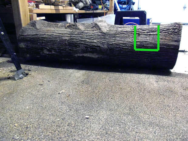 Corte una sección lo suficientemente pequeña que puede caber la electrosierra en un lado. Vamos a ser volcarse a este bebé que nos salve algún tiempo. Por lo tanto, tiene dos cortes, un tercero a través del registro, no más lejos aparte que tal vez 8 o 10 pulgadas. Comience en la parte superior de uno de los cortes y cortar diagonalmente hacia el otro. Esto hará más fácil a la muesca esta sección. Repita con el otro lado. Si usted consigue una pieza poco molesta de madera usted puede intentar usar la motosierra o si tienes un martillo cerca de usted puede golpear hacia fuera. Si usted va la ruta de motosierra evitar corte más profundo en el registro que cualquier otro corte.