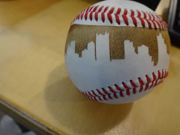 La semana pasada aprendí a usar el accesorio rotatorio para el láser de Trotec. Este accesorio se utiliza generalmente para grabar objetos cilíndricos y cónicos como vasos y botellas. Quería probar algo diferente, algo... esférico. También, quería grabar algunas de cuero. Poner dos y dos junto, decidió grabar una pelota de béisbol.