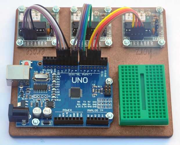 Conectar el ULN2003 controladores de motor paso a paso a la Arduino Uno usando los cables de protoboard 10 cm M-F con asignaciones de pines como sigue: