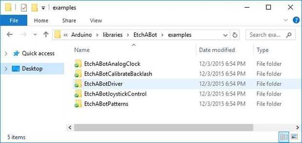 Varios bocetos de Arduino disponen de la biblioteca de EtchABot. Ellos son: