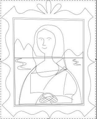 - Quitar el relleno de los caminos de Mona Lisa SVG revela las líneas ocultas que fueron previamente cubrieron (2ª imagen de Mona Lisa)