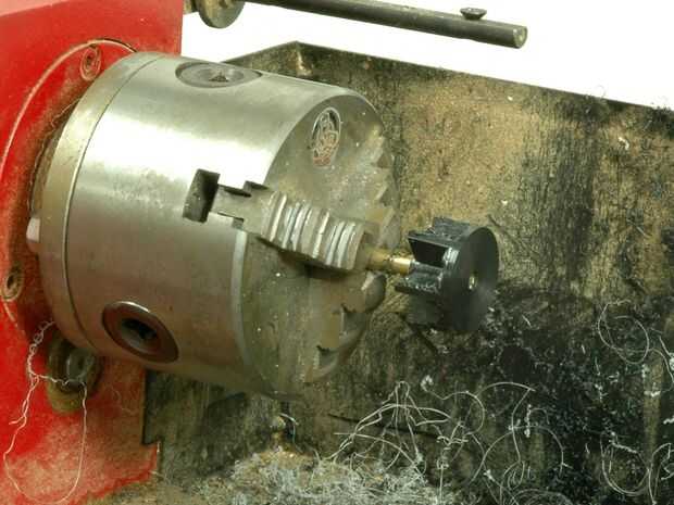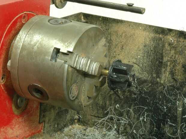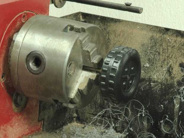 Hacer otro mandril de latón para el montaje de la rueda de plástico en el torno.