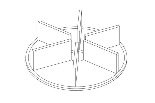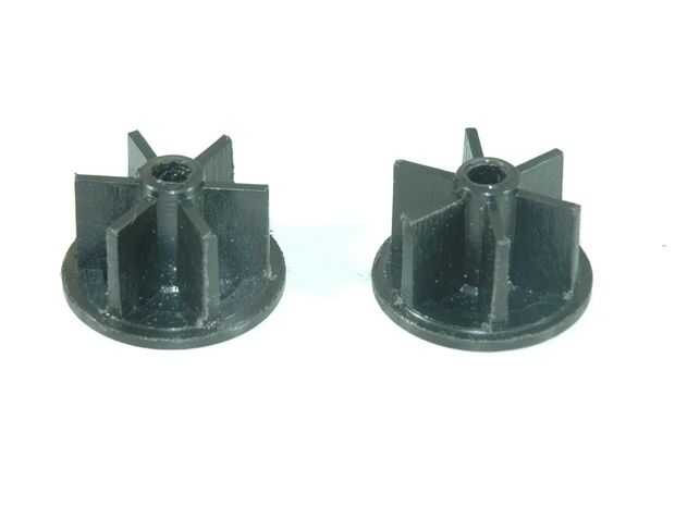 Las webs dentro de la rueda son las aletas radiales de impulsores. Estos necesitan ser dados vuelta para caber dentro del tubo de aerosol. El ajuste en este es menos crítico que el acoplador del motor y un poco si es aceptable.