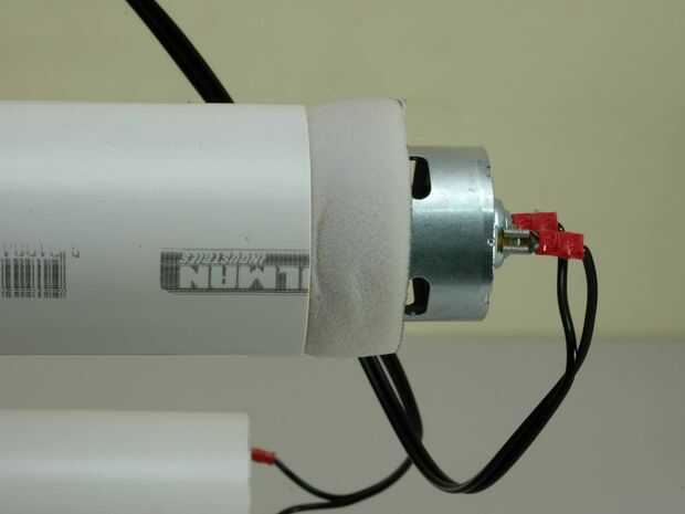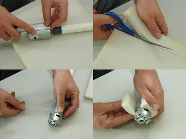 Medir el motor para el anillo de espuma alrededor del exterior. Cortar la espuma. Colocar cinta de doble cara para el motor y empuje el tubo de soporte de motor el motor y la espuma.