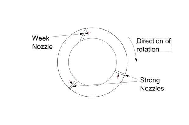 La causa de esta raya puede verse claramente en el lado en la foto del patrón de rociado.