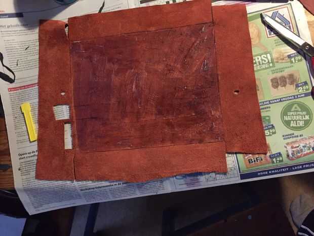 en la parte posterior pegué primero un trozo de algodón y tglued sobre el algodón un pedazo del leater, para ocultar y cubren los tornillos.