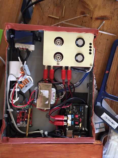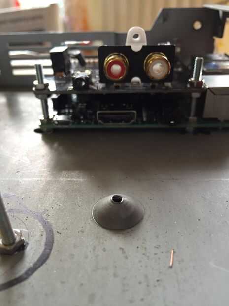 la frambuesa es lugar para un lado, para la conexión de USB y puertos USB para sobresalir. el preamplificador está situado al otro lado para que el volumen se pega hacia fuera allí.