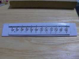 Inserte el 12 LEDs en el panel frontal, prestando atención a la polaridad correcta. Si el LED es nuevo las puntas de corte a 8mm y dobladas hacia fuera en los extremos. Coloque un pequeño toque de pegamento alrededor de la base de cada LED en la superficie interna del panel frontal.