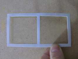 Para hacer los recortes para las células solares es necesario calentar el plástico como en el paso 2. Uso un lápiz afilado para marcar el corte salidas que serán 48 x 48 mm espaciados aparte de 5mm y 5mm de cada borde. Calentar el plástico y cortar primero cada esquina y luego utilizando un estrecho borde cortado con las dos aberturas. Que tenga que calentar el plástico para cada corte dependiendo de cómo de rápido eres. Cuando corte acabado recalentar el plástico y prensa plana. El marco resultante debe solaparse cada borde de las células solares de 50 x 50 mm en 1mm. Un método alternativo es primero cortar dos aberturas en un pedazo más grande de plástico y luego recortar la parte exterior a las dimensiones finales...