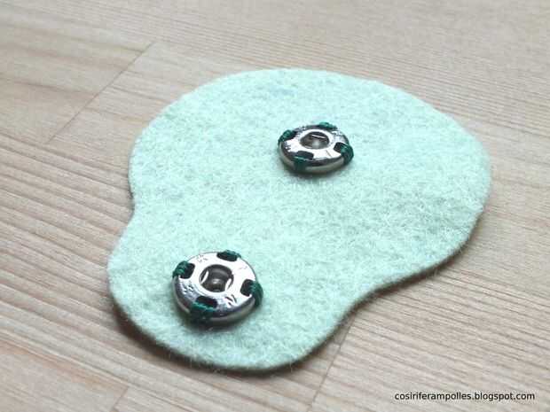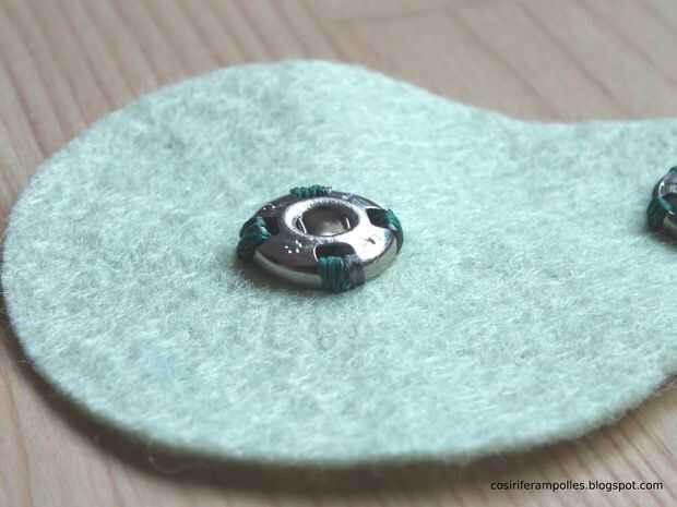 Coser dos botones metálicos en la parte trasera. En primer lugar, coser los botones con hilo normal y luego coserlas con hilo conductor.