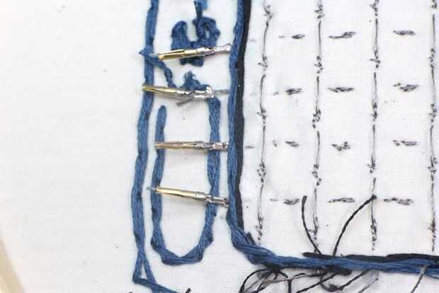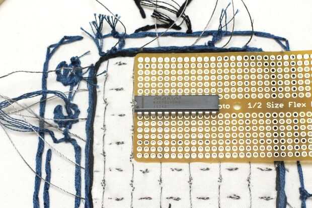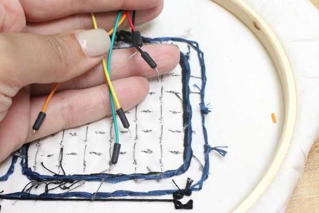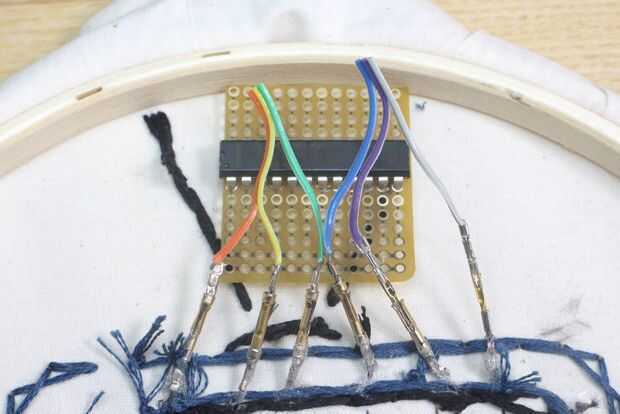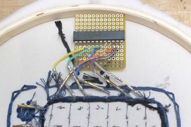 Modularidad es un gran plus cuando se trabaja con eTextiles, que hace más fácil detectar y respaldar a los pasos. También son una buena solución para la conexión de hilo conductor al alambre, mientras que hay hilo conductor puede soldar a, no está disponible... sin embargo (trabajando en ayudar a que a lo largo).