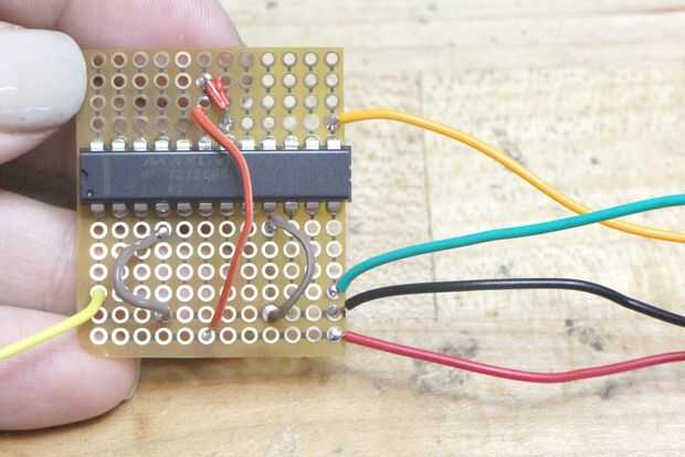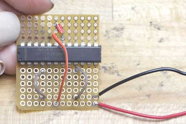 El flex proto-board es un poco demasiado grande para el proyecto. Lo impresionante de estos es que fácilmente puede cortarlas hacia abajo. Ajuste de la IC en el tablero y cortar a su tamaño.