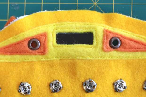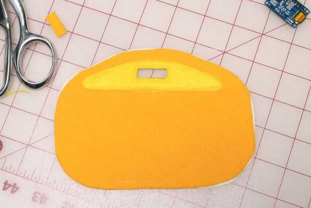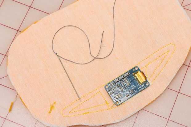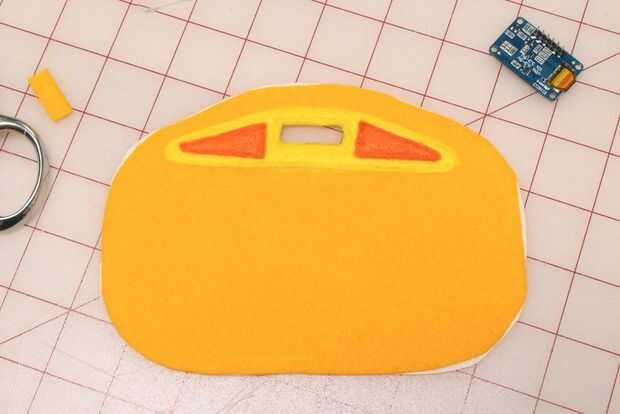 Prender las piezas del LED en la pantalla de coser, luego prender la pantalla hacia abajo y coser al cuerpo.