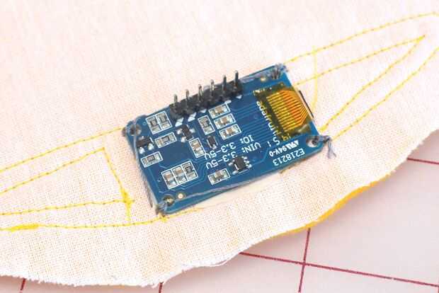 La Junta OLED convenientemente tiene 4 agujeros en cada esquina. Son para instalación con tornillos, pero son ideales para coser a través de.