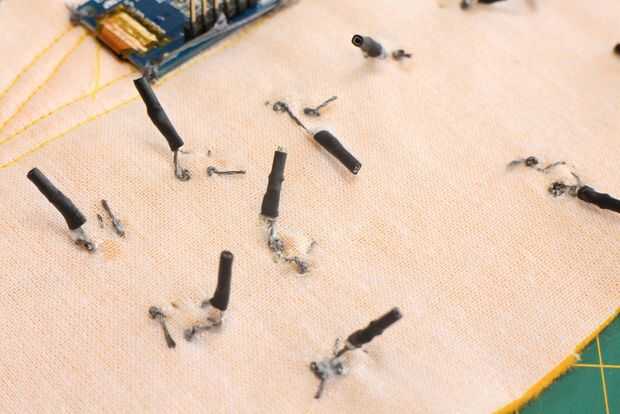 Pernos de presión son una de mis cosas preferidas a hacer proyectos de eTextile. Resuelven el problema del hilo de rosca de conexión del alambre y hacer cosas modular!