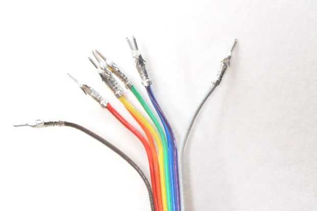 Se utilizan para conectar el desglose MPR121 al cuerpo de nuestro dispositivo. Esto es lo que las colas de 2" para, cada una de estas colas se el lado de enchufe hembra de un alfiler de engarce. Pinzas pueden ser utilizadas, pero están más complicadas y no hacen una correcta conexión. Sin embargo, encrespadura apretada lo suficiente para que trabajo y pegamento se utilizarán para fortalecer la conexión más tarde. Si usted tiene una herramienta de la encrespadura, genial! Utilice.