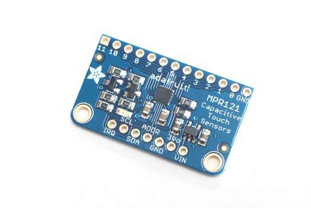 Compresión de las hembras a los broches y las mitades macho en los extremos de un cable de cinta. Luego aplicar pegamento y para asegurar y aislar la tubería del encogimiento del calor. El otro extremo es soldado a la Junta de arranque MPR121.