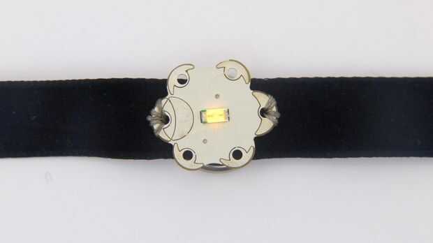 Por último, cubrir glam con la flor de fieltro. Puede sujetar con cinta de doble cara o pegamento para tela. Un poquito de algodón para difuminar la luz de lo LED de la materia. Desde aquí, puede personalizar un sombrero con esta flor palpitante, utilizar como gargantilla o pulsera.