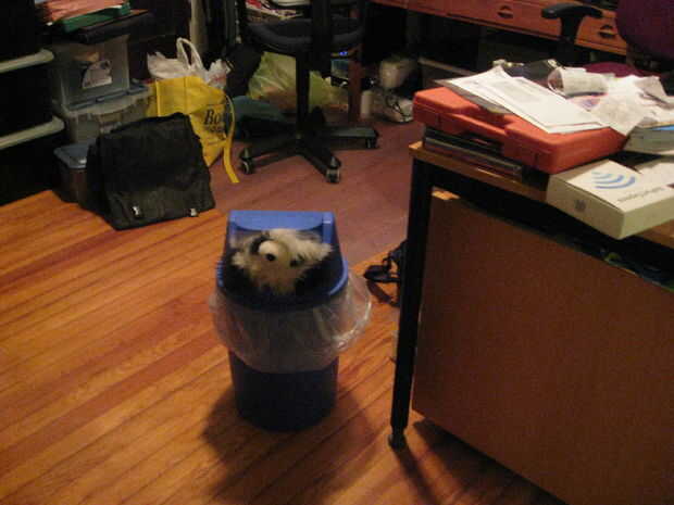Apuntalar la caja con mecanismo de apuntalamiento y luego colocar el cebo de Panda molestos debajo de él. Después de un tiempo, el panda a hurtadillas y el anzuelo, accidentalmente golpeando sobre el mecanismo de apuntalamiento y salir de la trampa.