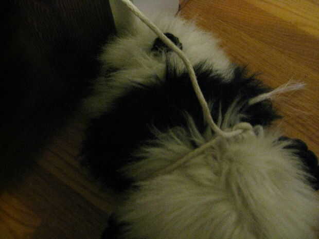 Atar una trampa de oso, estamos suponiendo que sabe atar uno por ahora, cuelgue el extremo asegurado desde un lugar seguro. Colocar el cebo en el centro y espere el Panda por venir. Cuando pone en marcha la trampa, se pegó.
