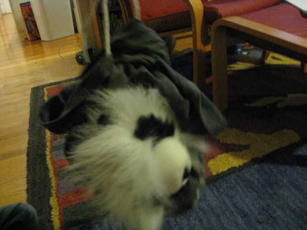 Lazo de la cuerda a través de las cuatro aberturas en la camiseta y corbata en el palo. Poner el cebo de Panda molestos en la camiseta y espere el panda (panda los molestos) que aparezca. Él va quedar atrapado dentro de la camiseta (con suerte) y recoger el palo y a pie con él. Acaba de capturar un oso Panda!